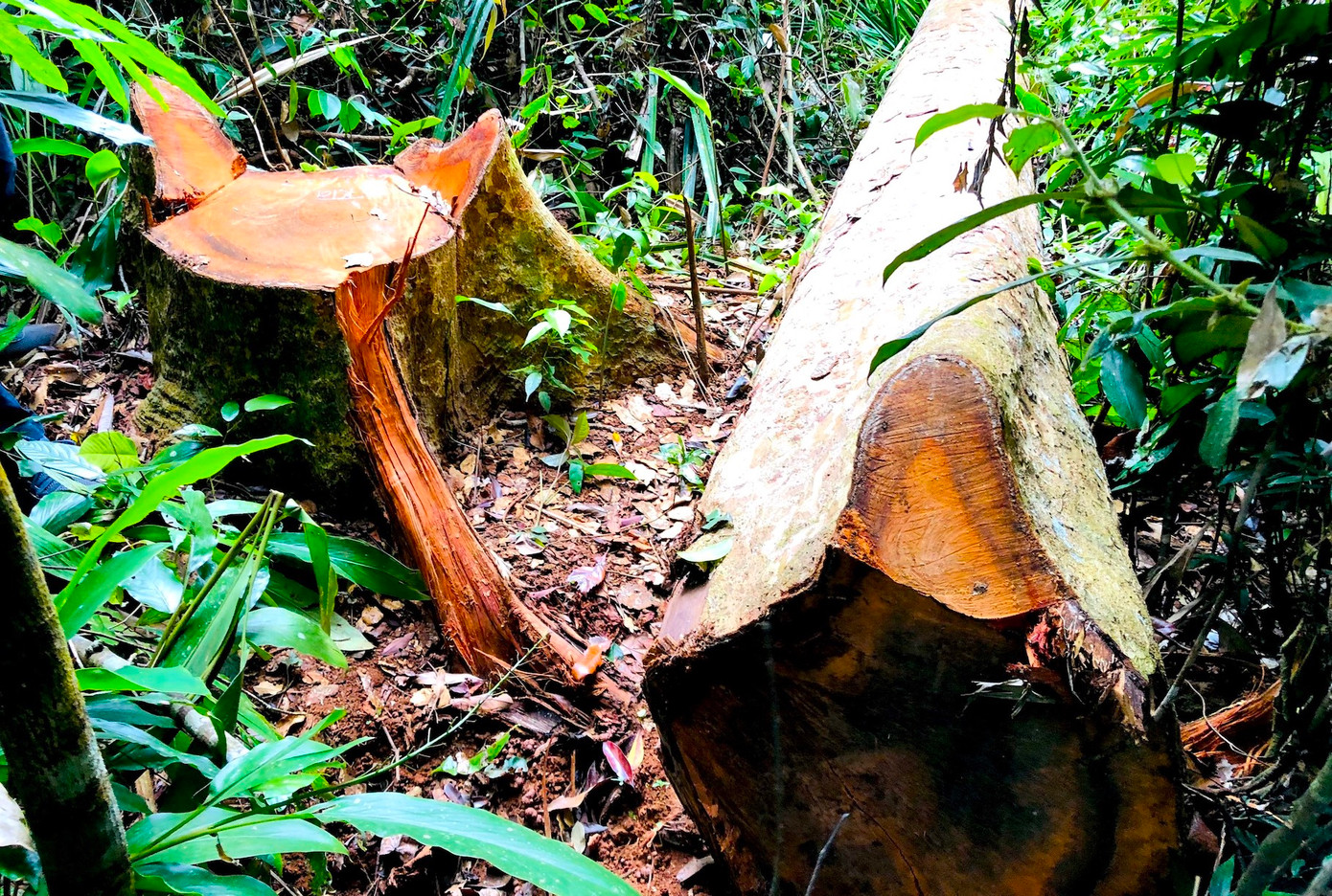 | | Thân gỗ với đường kính 'khủng' bị đốn hạ | |