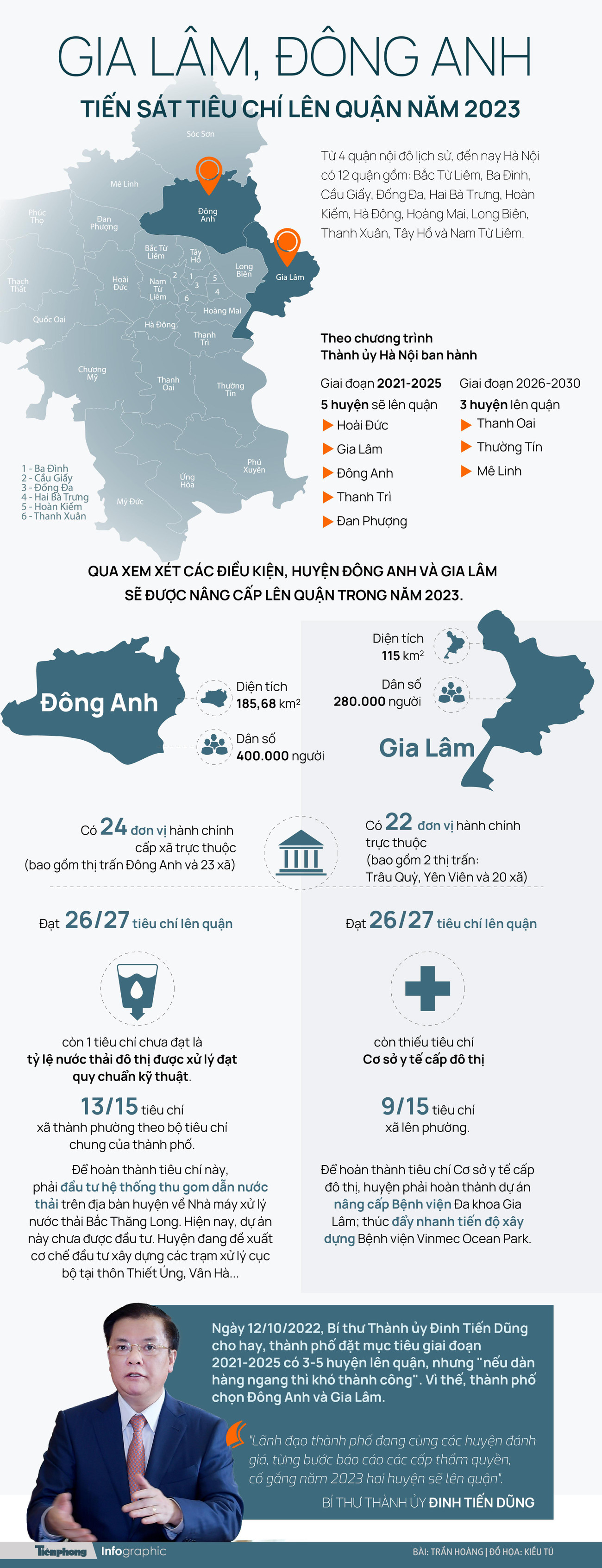 Gia Lâm, Đông Anh tiến sát tiêu chí lên quận năm 2023