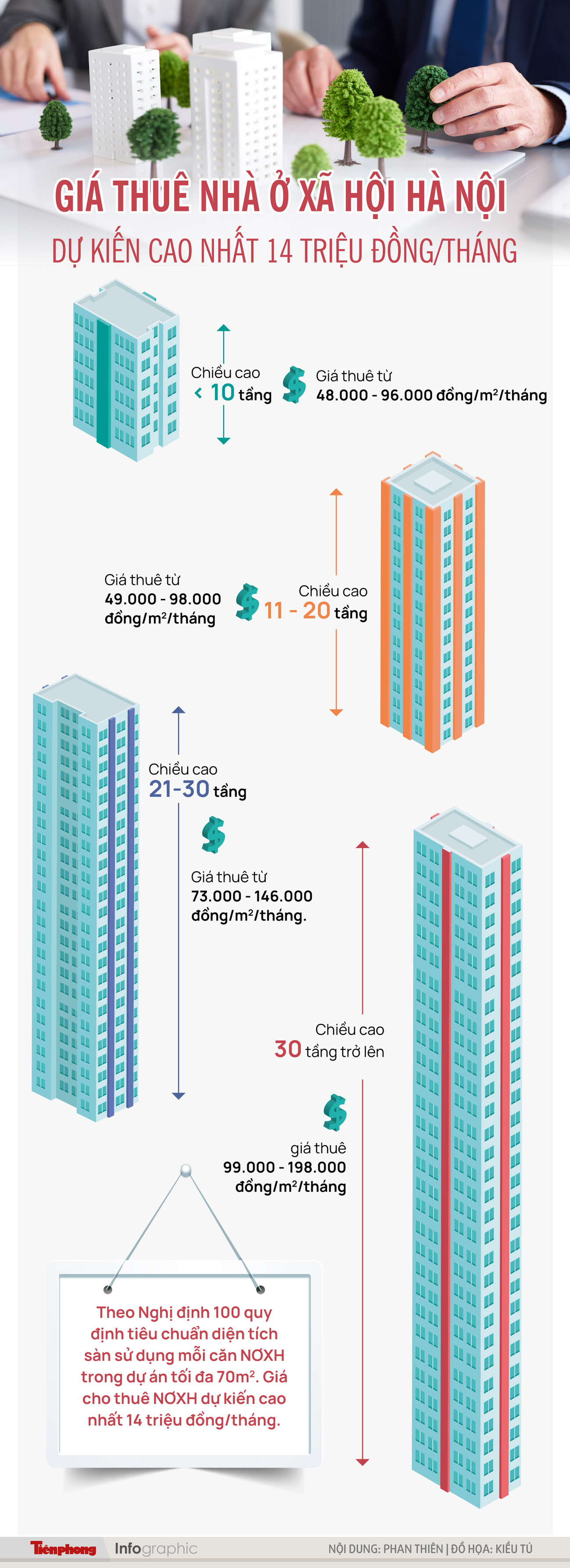 TPO - Theo dự thảo khung giá cho thuê nhà ở xã hội đang được UBND TP Hà Nội lấy ý kiến, mức giá cho thuê dự kiến thấp nhất 48.000 đồng/m2/tháng và cao nhất 198.000 đồng/m2/tháng.