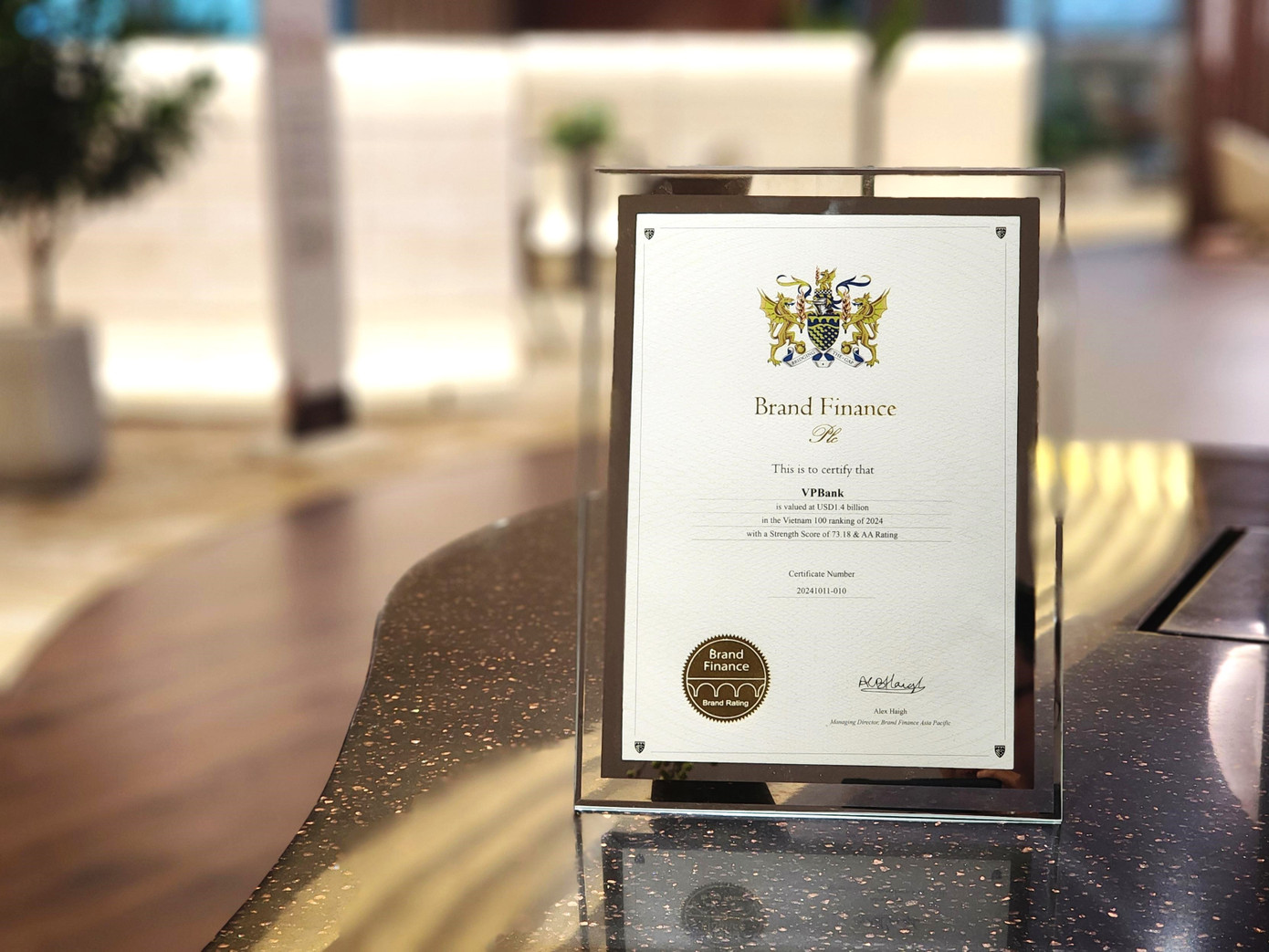 Báo cáo Việt Nam 100 2024 do công ty định giá thương hiệu hàng đầu thế giới Brand Finance công bố mới đây cho thấy thứ hạng của VPBank đã cải thiện 1 bậc so với năm 2023, với giá trị thương hiệu tăng từ 1,28 tỷ USD năm 2023 lên 1,35 tỷ USD trong năm nay. Chỉ số sức mạnh thương hiệu của VPBank đạt 73,2 trên thang điểm 100. Ngoài vị trí Top 10 thương hiệu giá trị nhất Việt Nam 2024 sánh vai cùng các doanh nghiệp đầu ngành như Viettel, Vinamilk, Vietcombank…, VPBank còn nằm trong Top 6 ngân hàng có giá trị thương hiệu mạnh nhất trên thị trường.