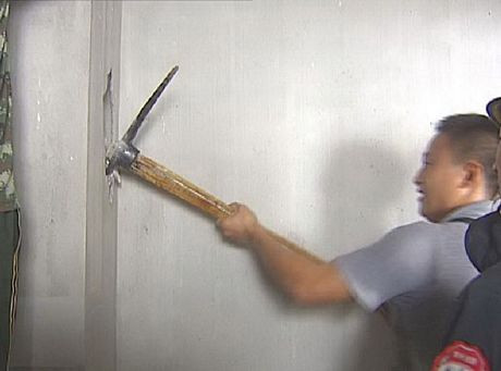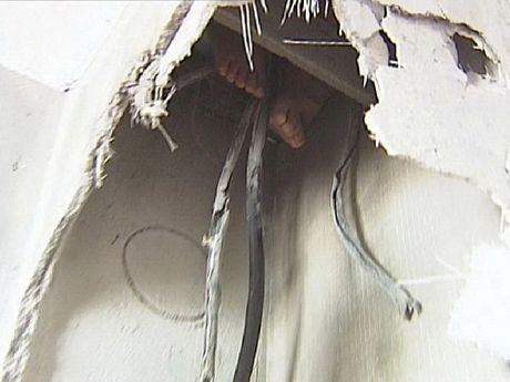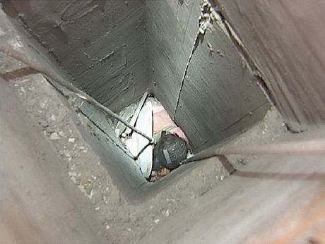 Sau đó họ khoan một lỗ để đưa vào các tấm ván phía dưới cô bé nhằm giúp bé không bị rơi sâu hơn xuống ống khói.