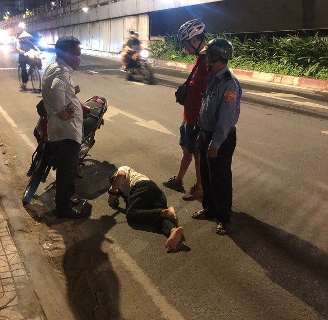 Khuya 3-6, nhiều người di chuyển trên đường Cộng Hòa (gần cầu vượt Hoàng Hoa Thám, thuộc phường 12, quận Tân Bình) bắt gặp người đàn ông nằm bất động trên đường, ngay cạnh chiếc xe máy.