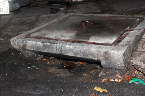 Cống thoát nước nơi nam thanh niên bị kẹt chân. Thông thường miệng cống có rào sắt để chắn rác nhưng cái này không có.