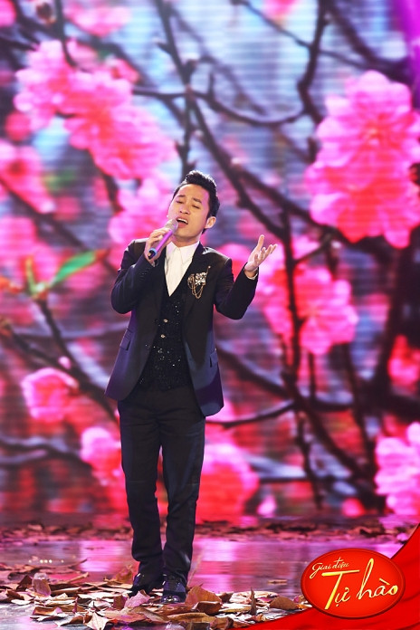 NSƯT Quang Lý trình bày ca khúc "Sẽ về Thủ đô", thể hiện nỗi nhớ của người đi xa gửi về Hà Nội yêu dấu: "Ai về Thủ đô tôi gửi vài lời – Tây Hồ mờ xa là nhà tôi đó". Ảnh: giaidieutuhao.com.vn.
