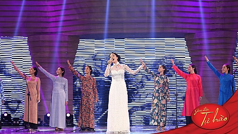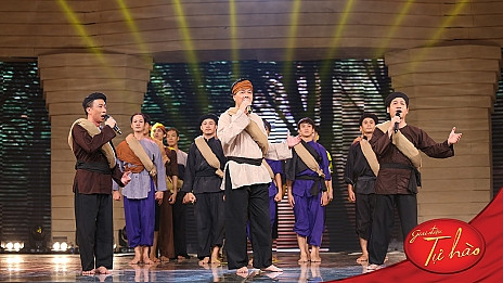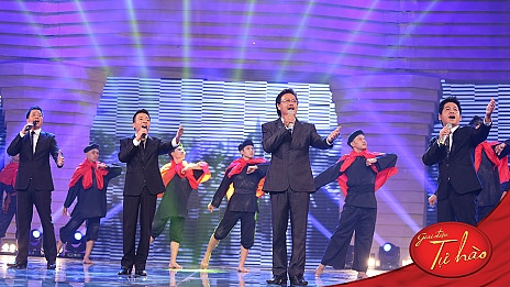 Tiếp đó, bộ ba đóng đinh với những ca khúc nhạc đỏ - Việt Hoàn, Trọng Tấn, Đăng Dương đã bước lên sân khấu và thể hiện bài hát ‘Chiến sĩ Việt Nam’ của nhạc sĩ Văn Cao, khắc họa hình ảnh người chiến sĩ Việt Nam thuở đầu, mà theo Tiến sĩ khoa học Đoàn Hương là ‘chân đất, quần nâu mà làm nên lịch sử’.