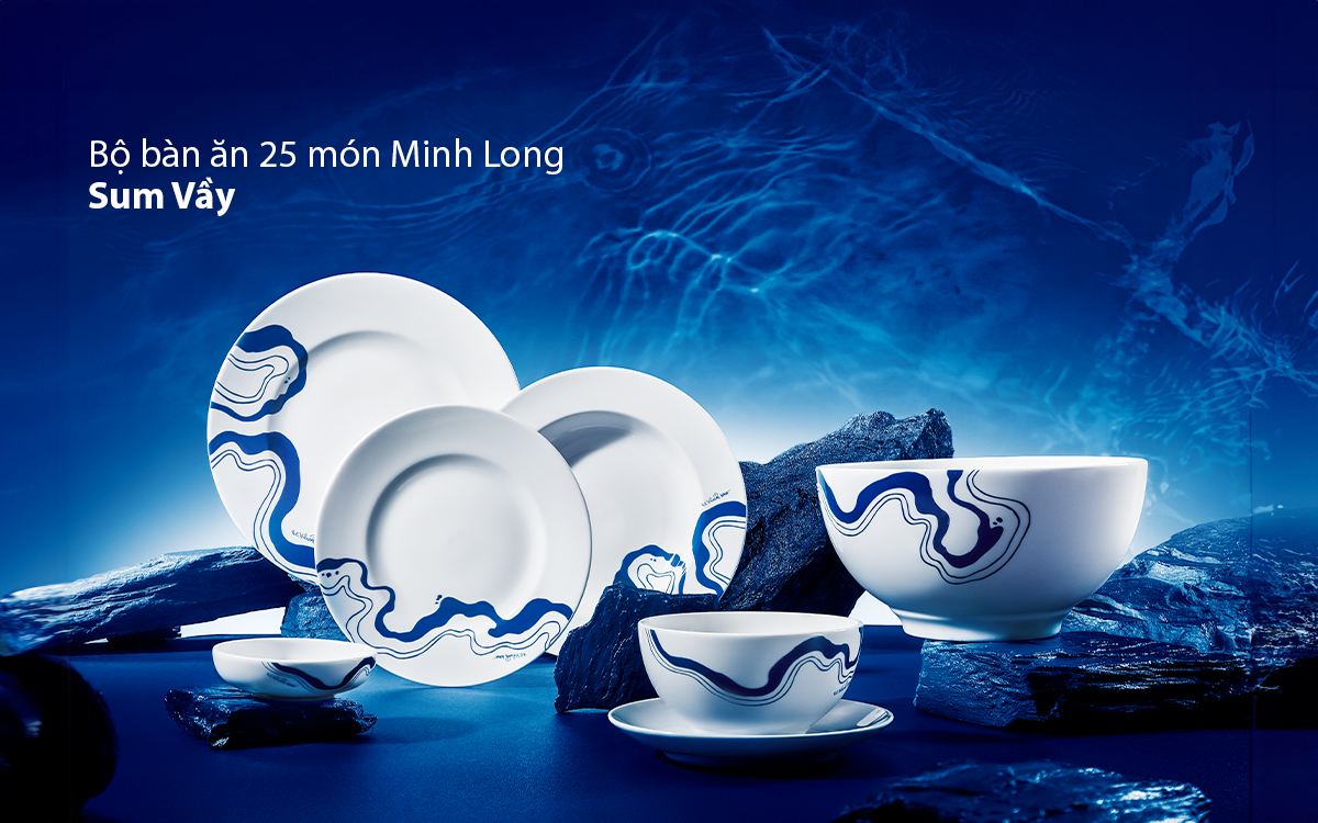 VIB đã tinh chọn các vật dụng mang tính ứng dụng cao, gắn liền với những buổi sum họp gia đình như: bộ 25 món chén bát, hộp dưỡng sinh, ly sứ giữ nhiệt… từ thương hiệu gốm sứ 55 năm tuổi Minh Long. Trên lớp men cao cấp, họa tiết “sông về biển” được nghệ sĩ Bùi Công Khánh khắc họa tinh tế làm biểu tượng cho dòng chảy tình thân - như bao nhánh sông cuộn trào tụ về một biển, mỗi thành viên dù gần hay xa đều hướng về Nhà.