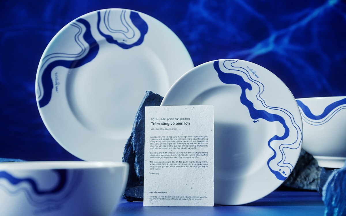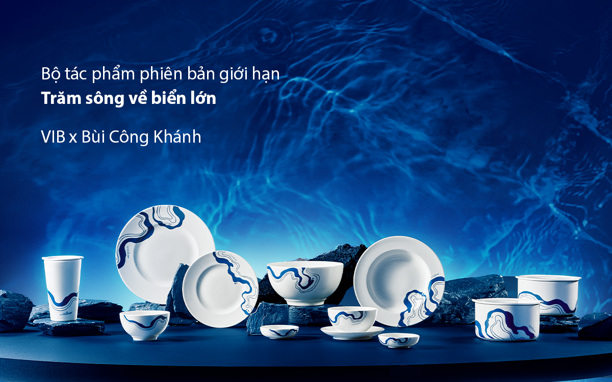 Tường tận “insight” cốt lõi đó, VIB kết hợp cùng nghệ sĩ thị giác Bùi Công Khánh và Gốm sứ Minh Long, cho ra đời bộ tặng phẩm giới hạn “Trăm sông về biển lớn”. Với thông điệp sum vầy gởi gắm qua từng chi tiết, tựa như lời tri ân của VIB đến các khách hàng đã lựa chọn nhà băng làm nơi gửi tiền.