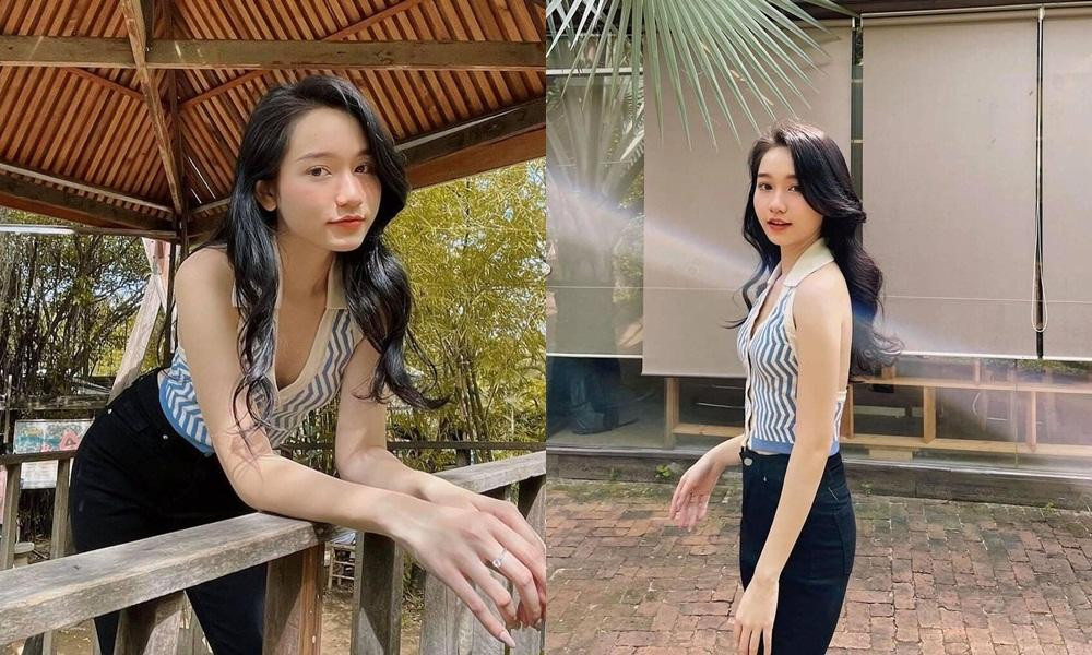 Khi Lan Ngọc khoe loạt ảnh chụp trong kỳ nghỉ gần đây, netizen nhanh chóng chú ý đến chiếc áo yếm cổ polo mà cô diện. Lan Ngọc sau khi giảm cân đã có vóc dáng thanh mảnh, mặc gì cũng đẹp nên chẳng ngại diện đồ vừa ôm vừa lửng để khoe vòng eo thon.