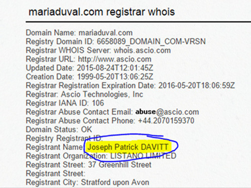 Do đó, phóng viên CNN đã tự mình điều tra và họ cho rằng một người Australia tên là Joseph Patrick Davitt và công ty Listano của ông ta là chìa khóa để giải mã bí ẩn Maria Duval. Tên công ty Listano xuất hiện trong đăng ký tên miền mariaduval.com và mariaduval.net. Listano cũng là chủ hiện tại của các thương hiệu quốc tế mang tên Duval.