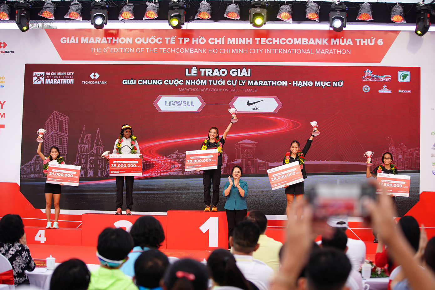 Một trong những điểm nhấn thú vị là sự tham gia và giành chiến thắng của những vận động viên Việt Nam, đặc biệt các vận động viên nữ. Cô gái vàng Nguyễn Thị Oanh tiếp tục chinh phục đỉnh cao mới tại giải chạy do Techcombank đồng hành chiến lược tại TP.Hồ Chí Minh.