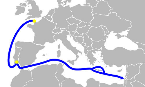 Khi các tàu đi qua eo biển Gilbraltar vào Địa Trung Hải, trạm giám sát của Anh phát tín hiệu yêu cầu chúng xác nhận thân phận nhưng không được hồi âm. Trực thăng Anh phát hiện nhóm tàu không mang cờ hay số hiệu nhận dạng, nhưng xác định được danh tính là đội tàu Israel. Trạm giám sát Anh phát tín hiệu chúc thượng lộ bình an, trước khi chiến hạm Israel tiếp tục hành trình.