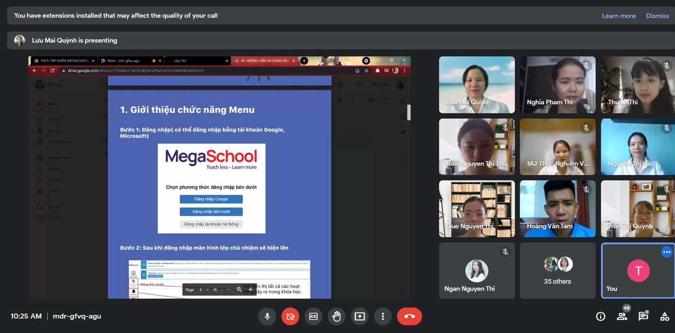 Nhiều phụ huynh cũng nhận thấy rằng MegaSchool có chức năng ghi lại bài giảng (record) để học sinh có thể xem lại và công cụ điểm danh trực tuyến. Với băng thông lớn và tốc độ đường truyền ổn định vì sử dụng các máy chủ trong nước, việc dạy và học trực tuyến trở nên dễ dàng đối với người dạy và người học.'