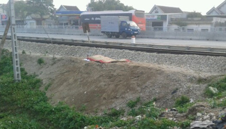 Hiện trường người đàn ông chết nằm cạnh đường sắt.