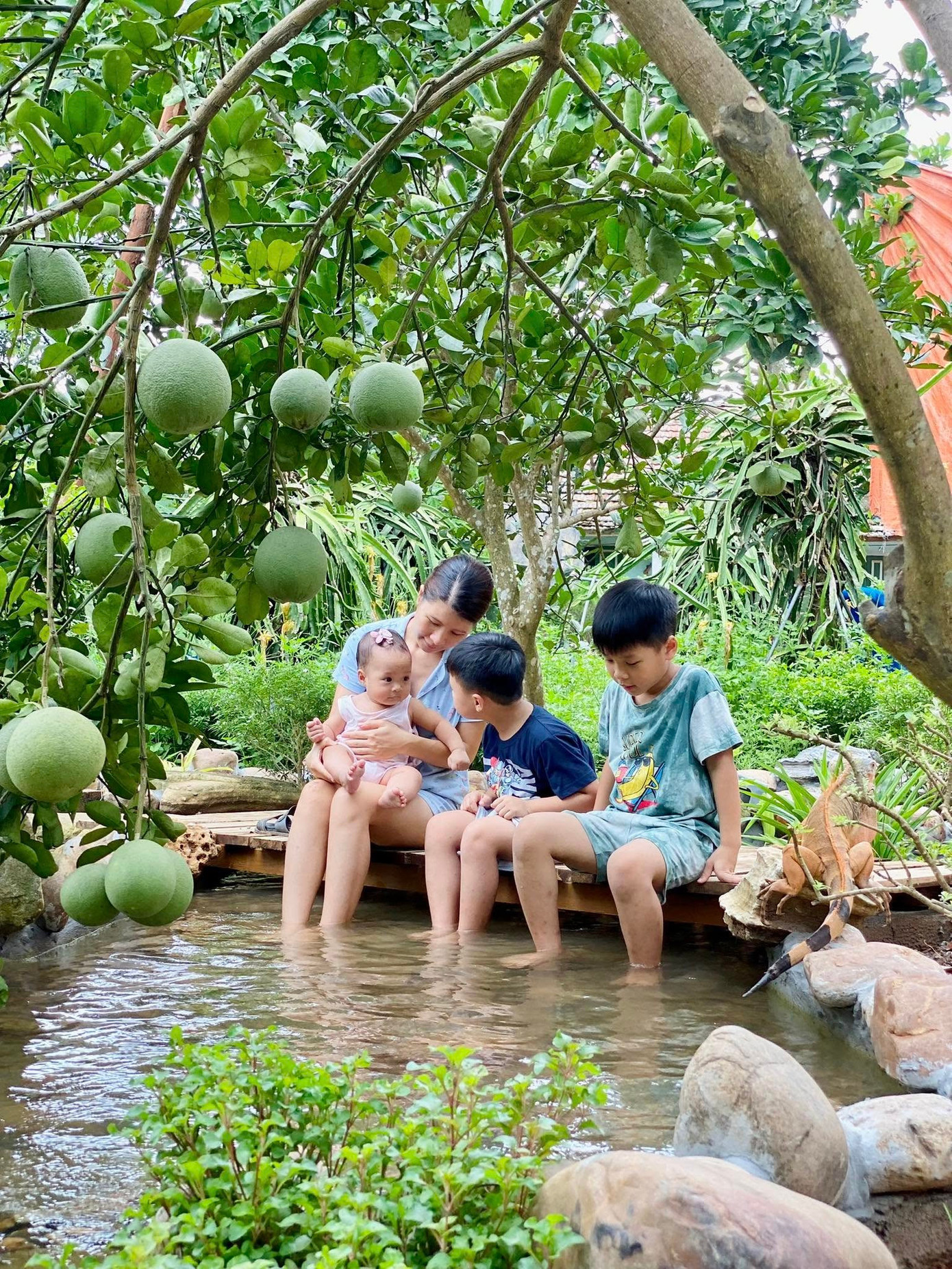 | Hồ cá Koi, suối nước là nơi con chị và các bạn nhỏ tới nhà chơi đều yêu thích |