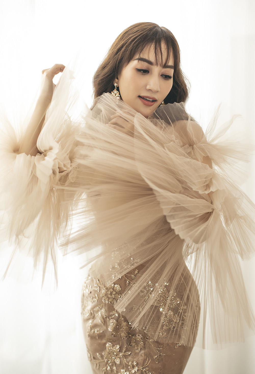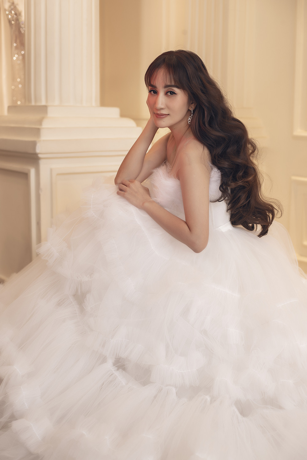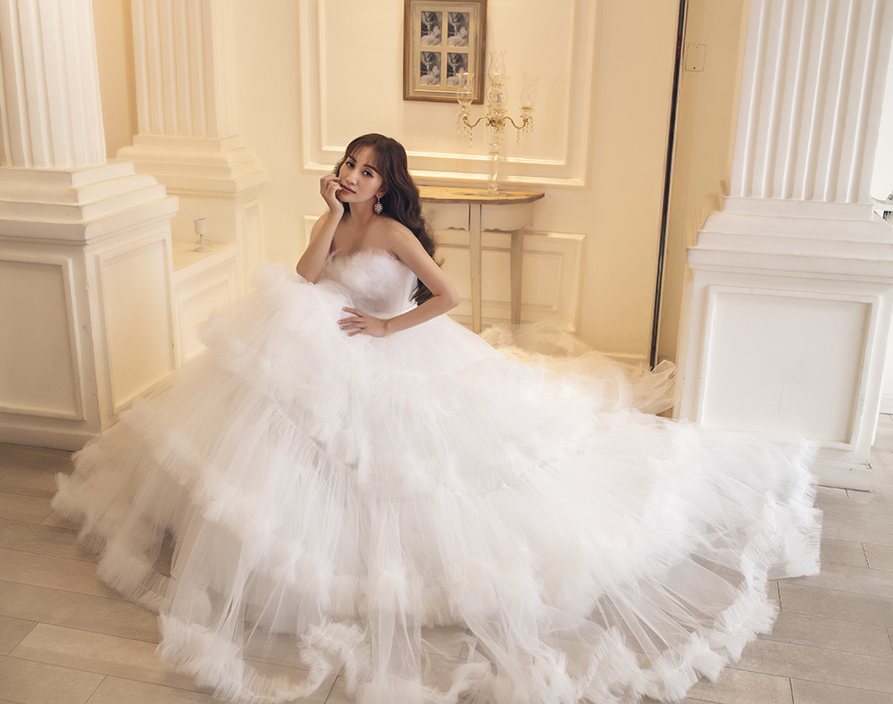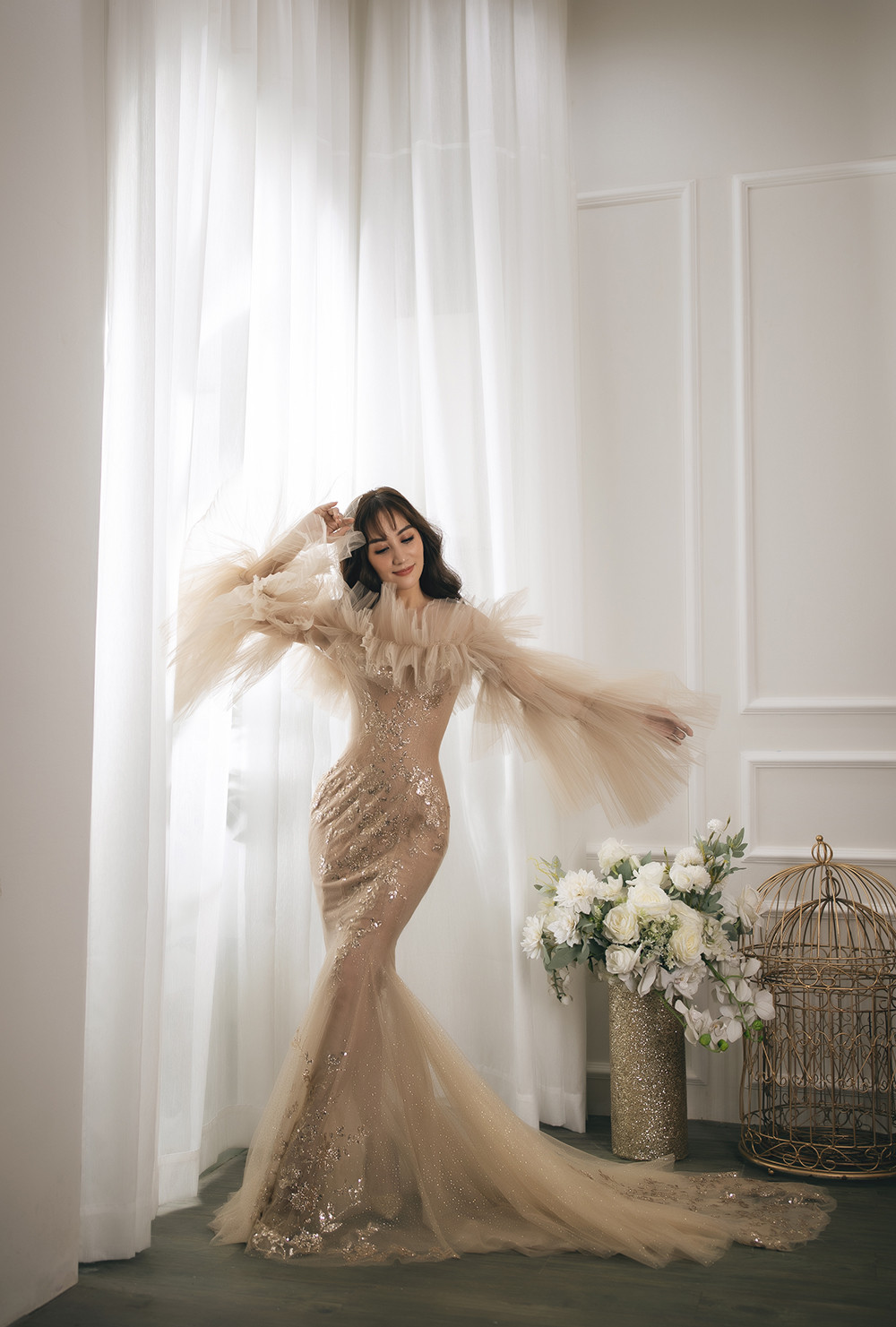 Với vóc dáng thon thả, ‘bà mẹ hai con’ tự tin làm model trong bộ ảnh mới. Khánh Thi triệt để khoe đường cong quyến rũ trong những bộ đầm cocktail ngắn, váy đuôi cá bó sát và váy cưới lộng lẫy như công chúa.
