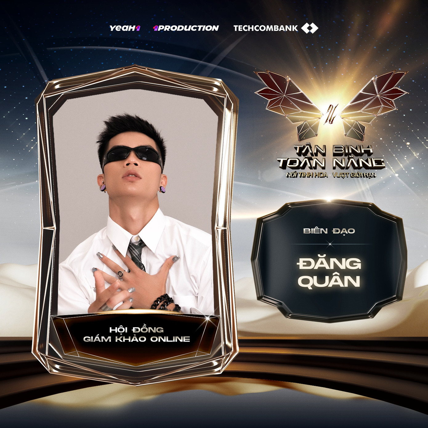 Với hơn 10 năm hoạt động nhảy múa, Đăng Quân có sự “chắc tay” trong vai trò đánh giá, sàng lọc dàn thí sinh Tân Binh Toàn Năng. Cùng kinh nghiệm tham gia nhiều chương trình lớn, Đăng Quân sẽ nhìn ra các nhân tố tiềm năng, đủ nội lực vượt qua được các thử thách "sống còn" và giành suất debut nhóm nhạc.