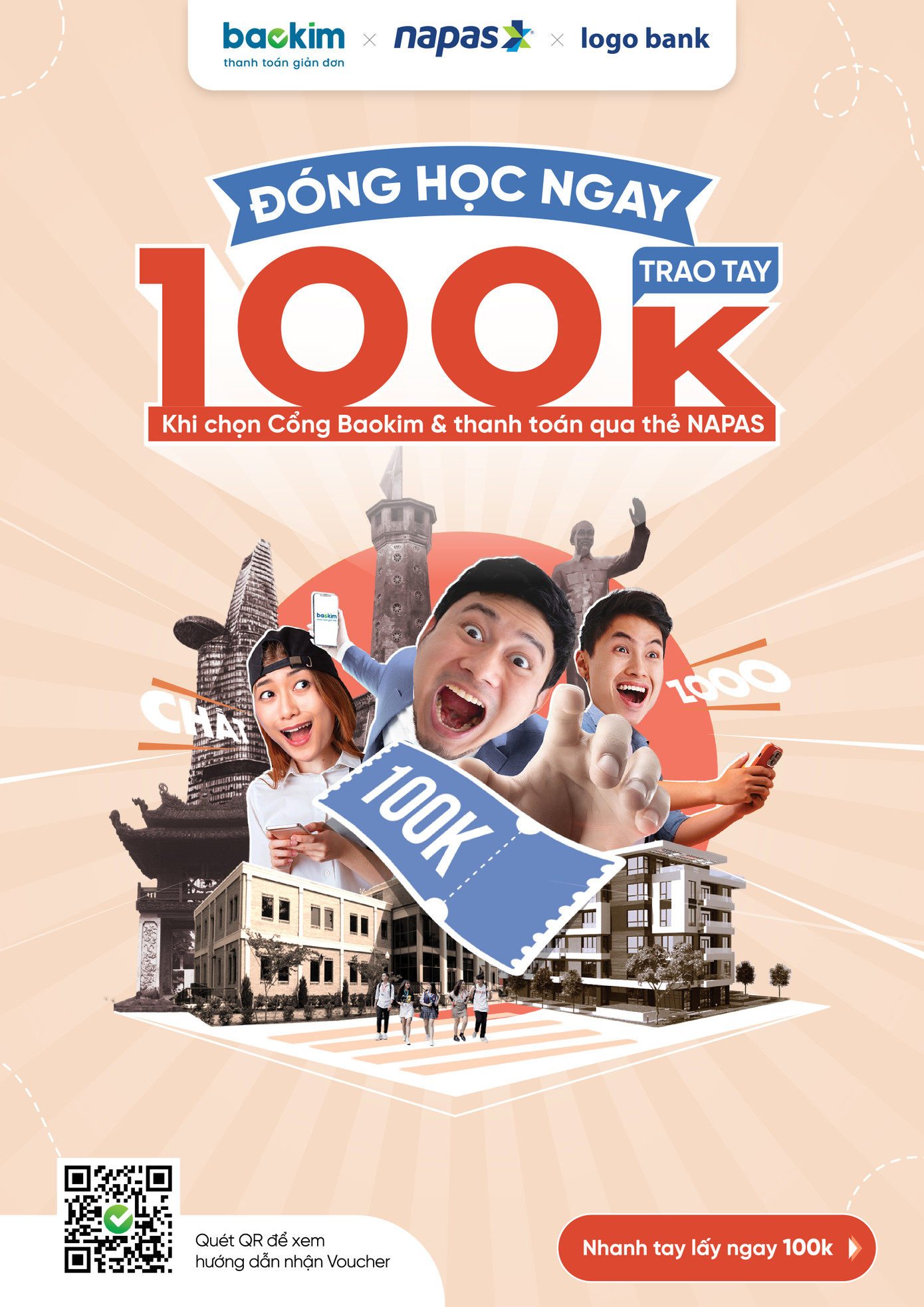 Theo đó, khách hàng là chủ thẻ NAPAS và là sinh viên tại các trường đại học khi thanh toán học phí trực tuyến bằng phương thức thẻ NAPAS qua cổng thanh toán điện tử của Bảo Kim sẽ được tặng mã khuyến mại trị giá 100.000 VND (trừ trực tiếp vào giá trị của giao dịch thanh toán) với giao dịch từ 200.000 VND trở lên. Tổng số lượng sinh viên hưởng ưu đãi dự kiến lên đến 16.000 sinh viên trong cả nước.