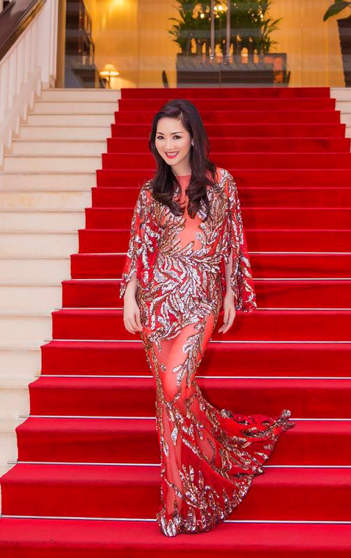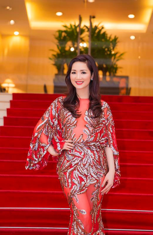 Người đẹp U50 diện chiếc đầm dạ hội cầu kỳ của NTk Hoàng Hải khoe vẻ trẻ đẹp quên tuổi.