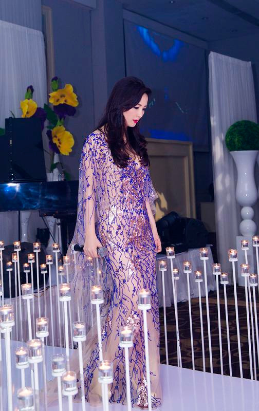Giáng My mặc những trang phục dạ hội vô cùng lộng lẫy trong đêm thơ-nhạc do cô tổ chức vào tối 8/8.