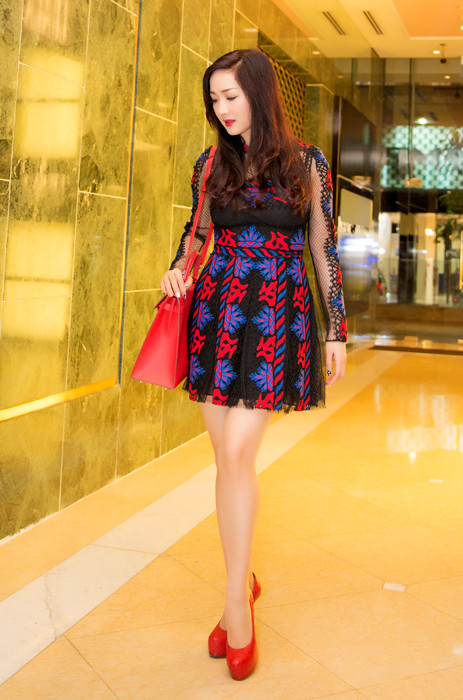 Mặc dù đã ở tuổi tứ tuần nhưng Giáng My vẫn tự tin mặc váy ngắn khoe đôi chân thon nuột nà.