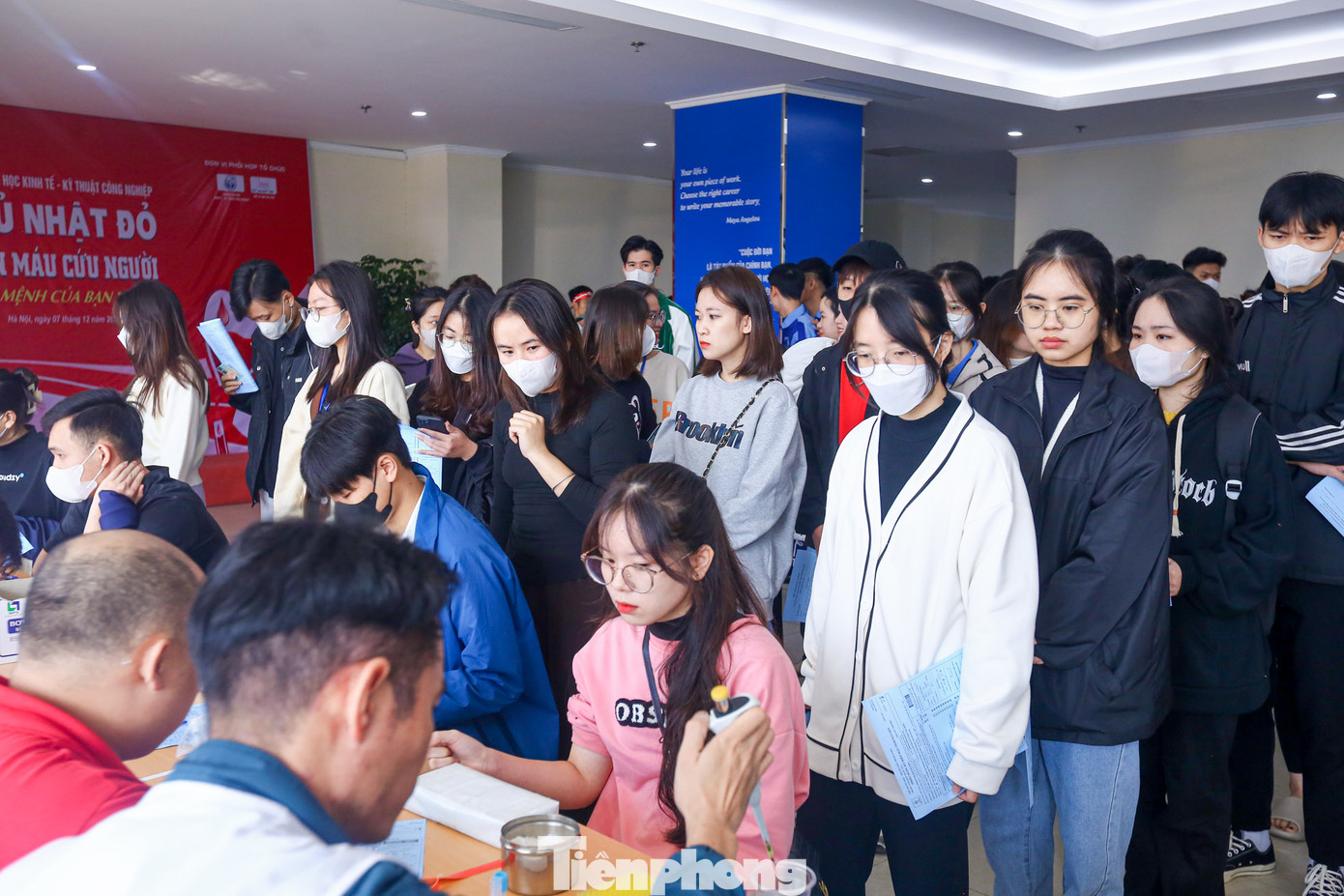 | Ngay từ sớm, các bạn sinh viên đã có mặt tại chương trình làm thủ tục, tham gia hiến máu. |