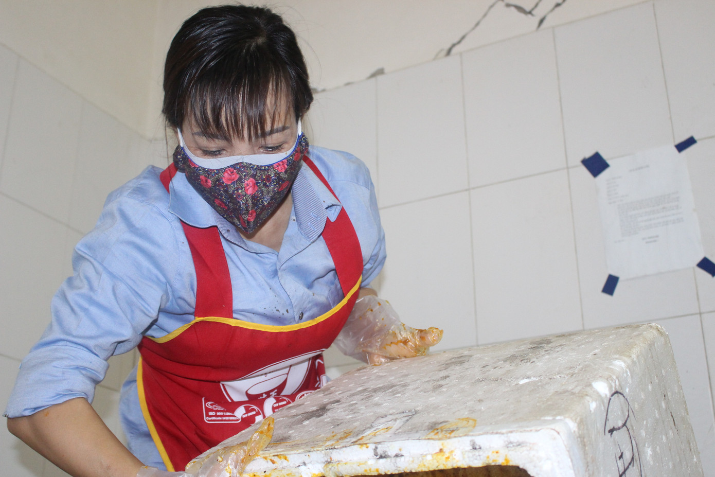Từ ngày 19/3 đến nay, cô Bùi Thị Mai Hương (Phó hiệu trưởng trường Mầm non Quang Diệm) đều hằng ngày tình nguyện lên khu vực này để nấu ăn cho gần 400 công dân cách ly.