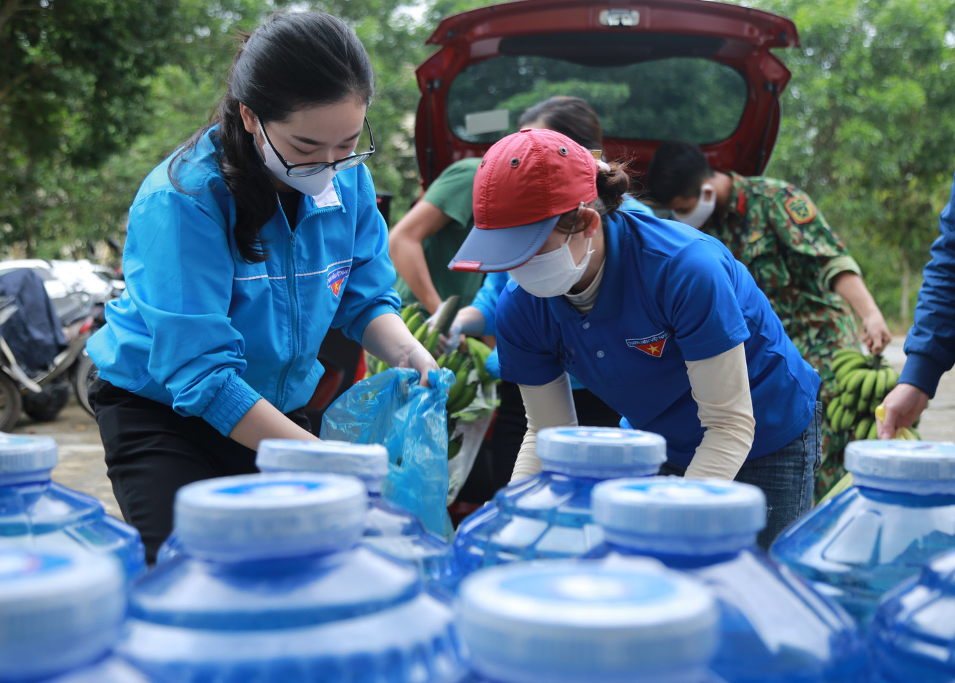 Những nhu yếu phẩm được nhóm giảng viên, đoàn thanh niên trường ĐH Hà Tĩnh về tại thôn xóm để thu gom.