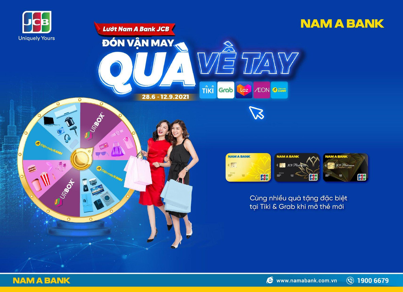 Đặc biệt, cũng trong thời gian này, khách hàng mở mới và chi tiêu qua thẻ tín dụng Nam A Bank JCB còn có cơ hội nhận gói quà tặng hấp dẫn: ưu đãi hoàn tiền đến 400.000 VNĐ cùng Gói mã giảm gía tại Tiki - Grab lên đến 1.500.000 VNĐ với hạng thẻ Platinum và ưu đãi hoàn tiền 300.000 VNĐ với hạng thẻ Standard. Xuyên suốt chương trình, chủ thẻ tín dụng Nam A Bank JCB sẽ nhận được thêm nhiều ưu đãi cực khủng đến từ các đối tác lớn hiện nay như Tiki, Grab, Điện máy xanh, Aeon Việt Nam, Lazada với những “deal xịn” giảm giá đến 500.000 VNĐ