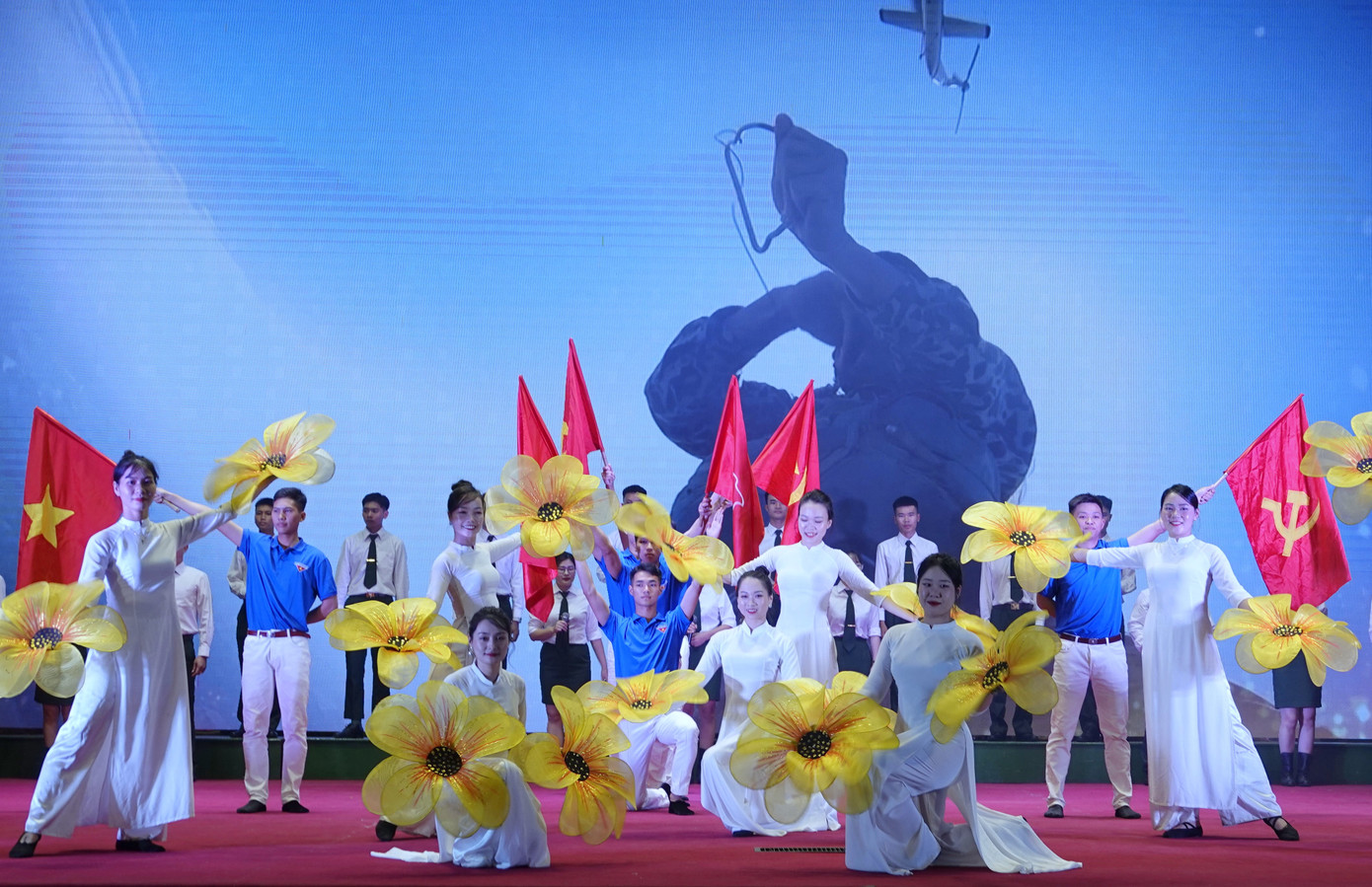 | Chương trình văn nghệ đặc sắc do đoàn viên thanh niên nhà trường và đơn vị kết nghĩa thể hiện. |