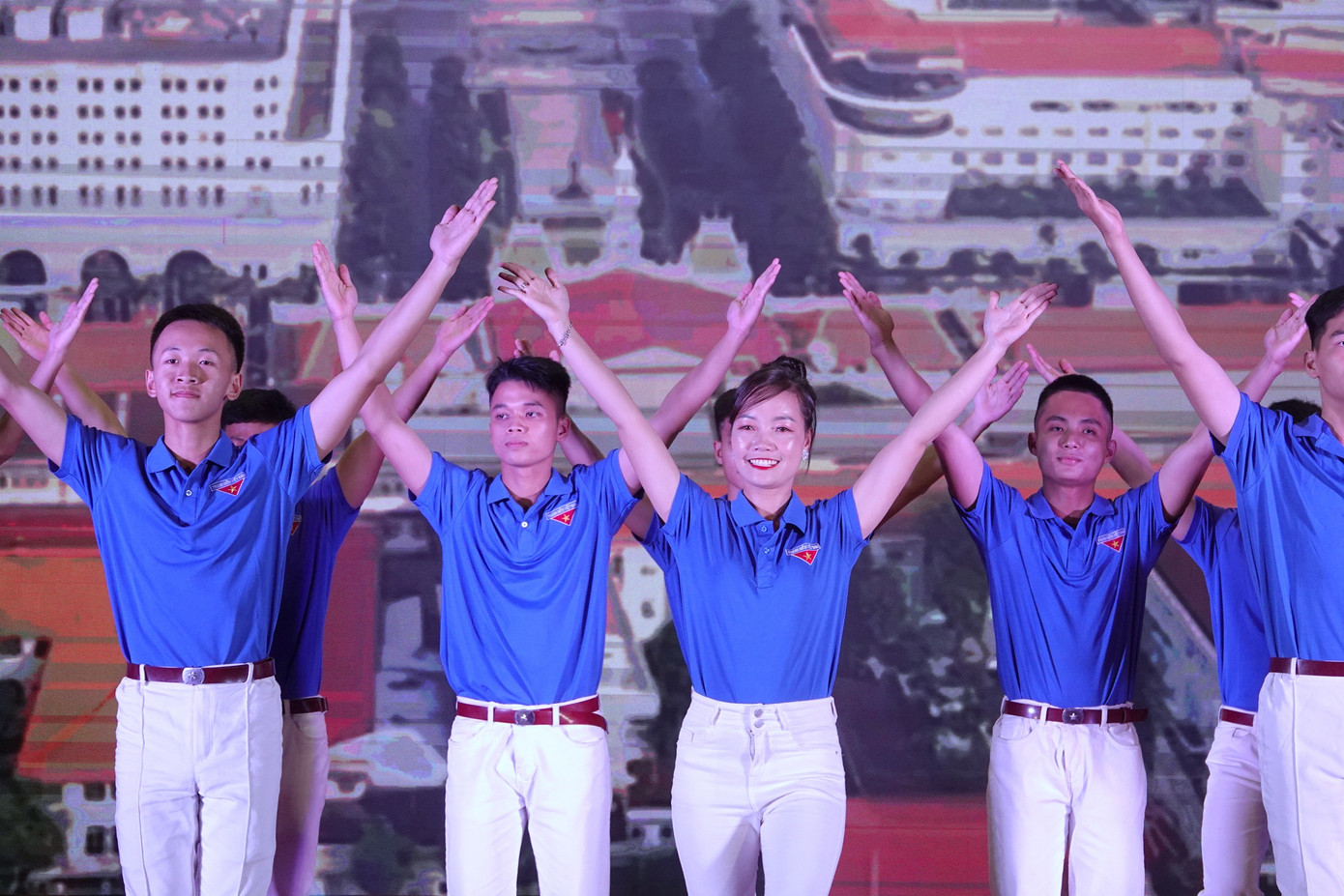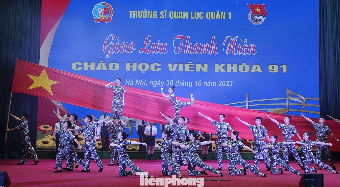 | Các tiết mục hòa tấu “Quân đội ta quân đội Anh hùng” và hát múa “Tiến bước dưới quân kỳ” do Đội quân nhạc cùng các hạt nhân văn nghệ là đoàn viên thanh niên Trường Sĩ quan Lục quân 1 và đơn vị kết nghĩa biểu diễn đã mở đầu cho chương trình giao lưu thanh niên. |