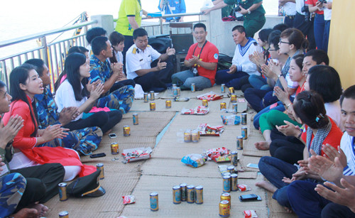 Chiều 8/5, tàu 996 thả neo gần đảo Song Tử Tây, đưa lãnh đạo Hành trình Tuổi trẻ vì biển đảo quê hương, đội văn nghệ xung kích và một số đại biểu vào đảo Song Tử Tây giao lưu văn nghệ với quân, dân trên đảo. Chương trình thực sự sôi nổi, thú vị với các ca khúc ngợi ca tình yêu quê hương, đất nước, ý chí kiên trung bảo vệ chủ quyền biển đảo quê hương, Tổ quốc.