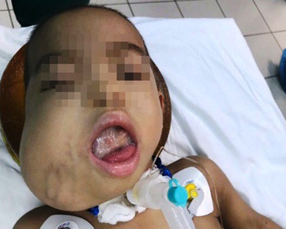 Trước đó, Bệnh viện T.Ư Huế tiếp nhận bệnh nhi H.H.H.N (4 tuổi, trú tại Huế) bị khối u quái vùng má bên phải từ lúc 4 tháng tuổi. Khối u hình thành từ trong khoang miệng gây chèn lưỡi, cản trở ăn uống.