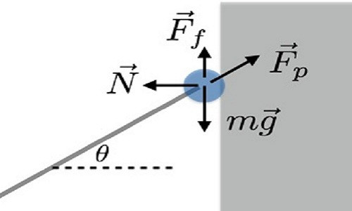 Các lực này bao gồm trọng lực mg trong đó m là khối lượng của chiến sĩ đặc công, g là gia tốc trọng trường. Ba lực còn lại gồm lực đẩy của sào tre Fp, phản lực của tường N, và lực ma sát Ff.