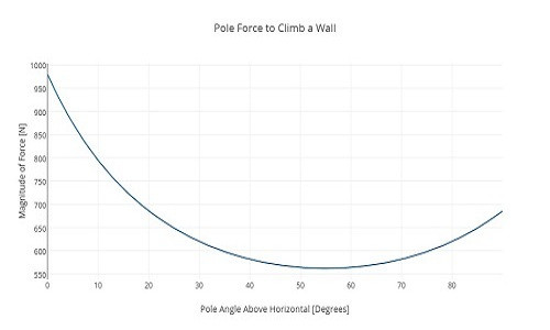 Kết quả cho thấy chúng ta cần một lực ban đầu chỉ lớn hơn trọng lượng của người leo một chút (khoảng 1000 Newton với người 70 kg) khi thanh tre gần như song song với mặt đất. Khi chiến sĩ bắt đầu leo lên tường, lực này giảm dần tới góc 50o vì thành phần dọc của lực đẩy tăng lên. Ở góc cao hơn, lực đẩy lại tăng do lực ma sát lúc này giảm. Tại góc 90o, lực đẩy bằng chính trọng lượng của chiến sĩ.