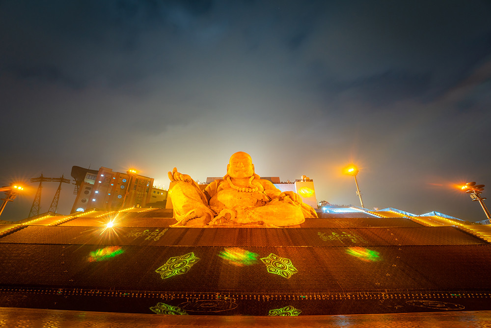 Nhiều chuyên gia cho rằng, giá trị độc bản của tượng Di Lặc Bồ Tát nằm ở sự kỳ công lắp ghép 6.688 viên đá sa thạch có tổng trọng lượng nặng hơn 5.000 tấn. Mỗi viên đá nặng từ 1,2 -1,5 tấn được điêu khắc với một kích thước riêng và được ghép lại với độ chính xác tính từng centimet. Có những viên đá ở vị trí khó như mũi, miệng, bàn tay tượng Di Lặc, đơn vị thi công có khi phải mất đến 3 -4 ngày chỉ để ghép một viên với biện pháp treo ngược đá chưa từng được ứng dụng tại Việt Nam.