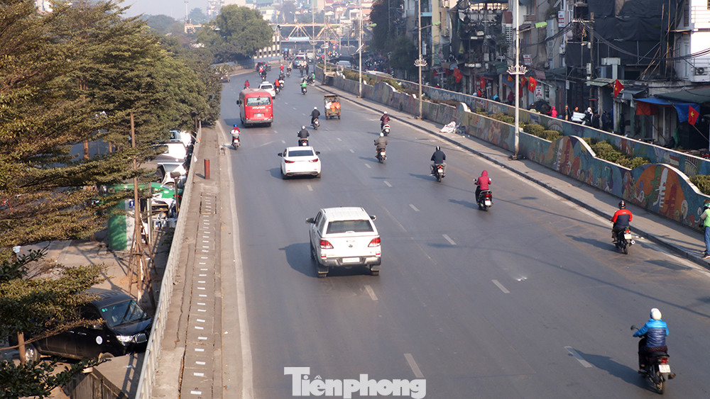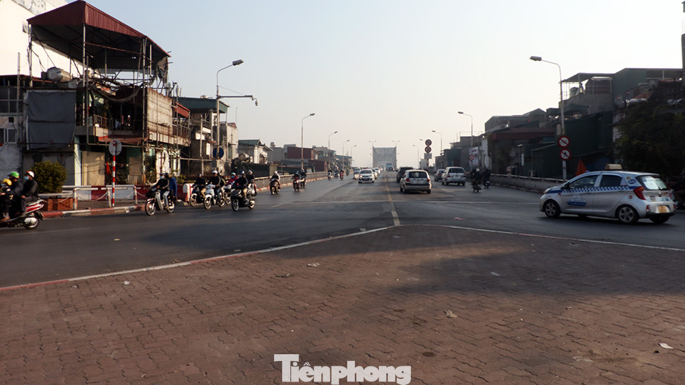 Đường dẫn lên cầu phía trung tâm Hà Nội thông thoáng.