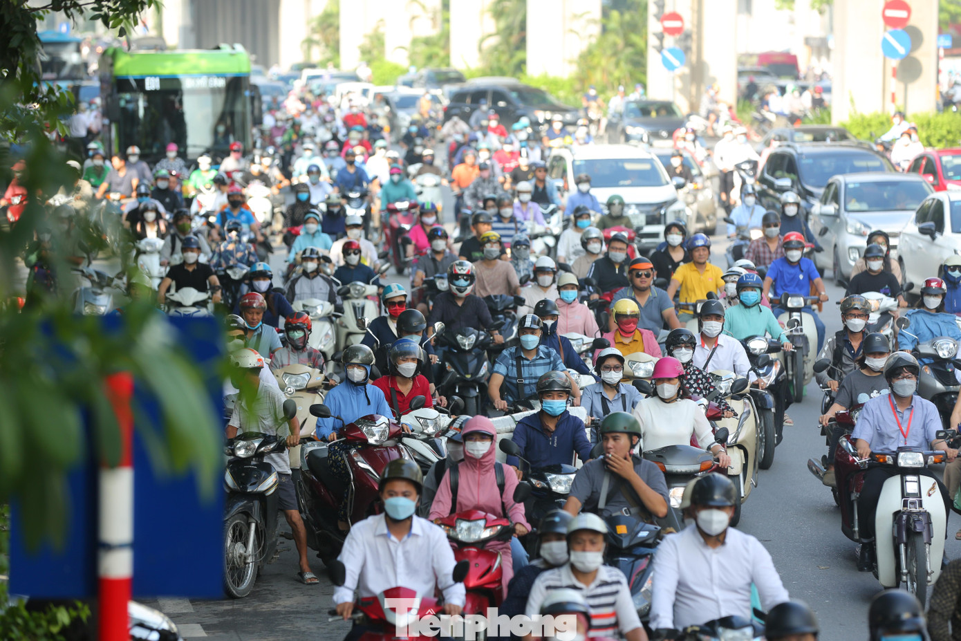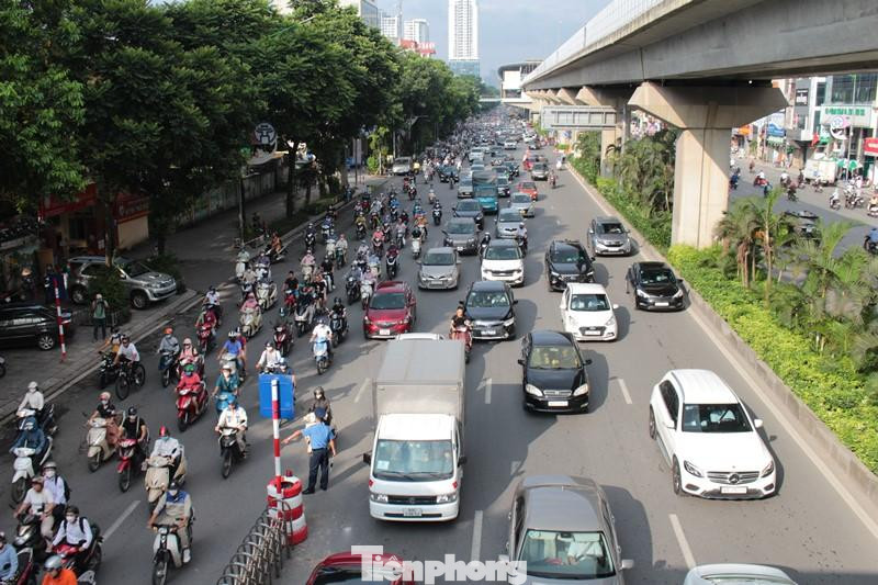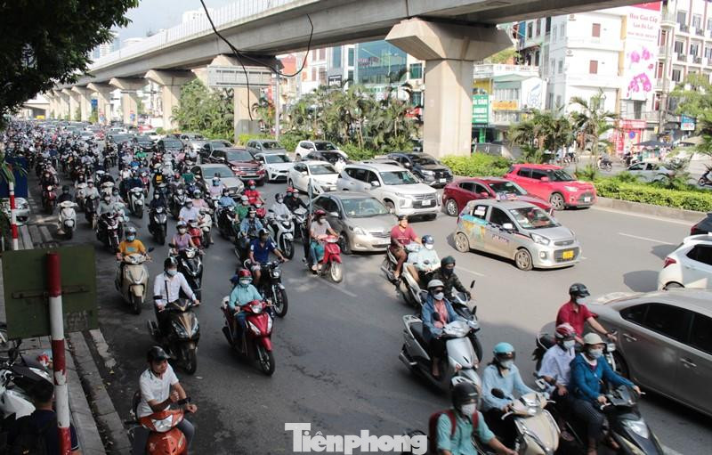 | 6 làn đường Nguyễn Trãi đông kín lưu lượng ô tô, xe máy. |
