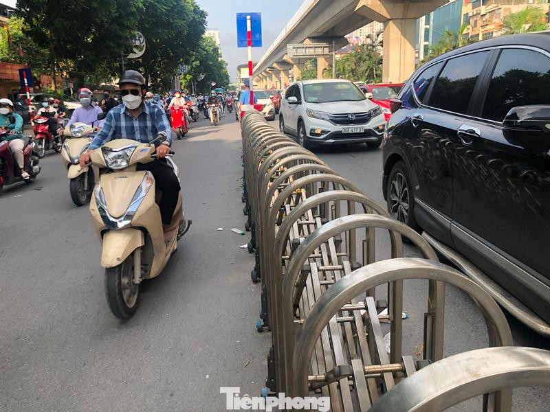 | Để tách được dòng xe máy, ô tô đi theo làn riêng, cùng với dải phân cách lắp đặt trên đường, tại 2 đầu đường tổ chức và các ngã ba, ngã tư, Thanh tra giao thông đã đứng giữa đường để rẽ, phân nhánh các dòng phương tiện. |