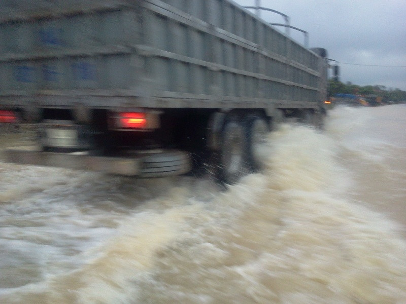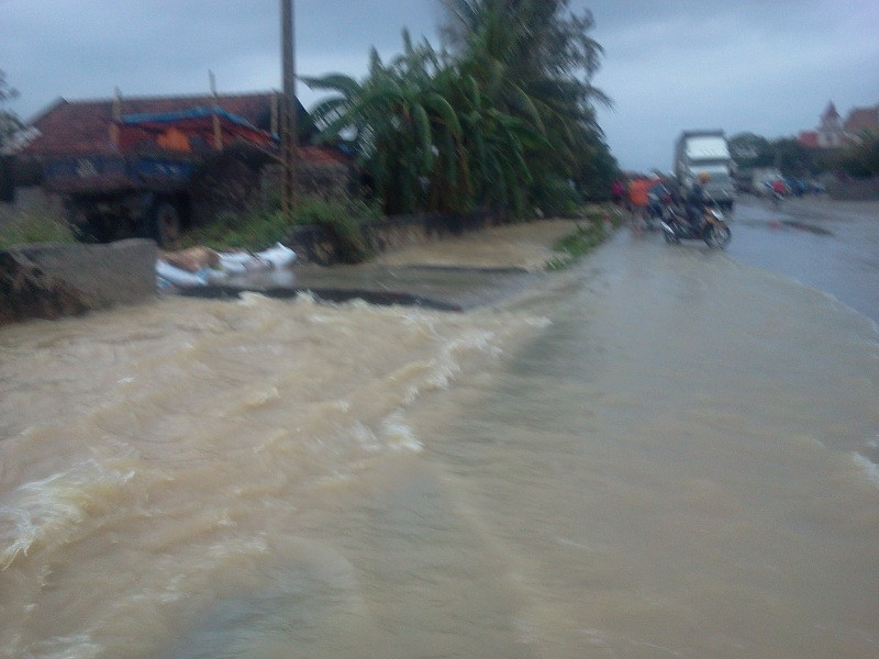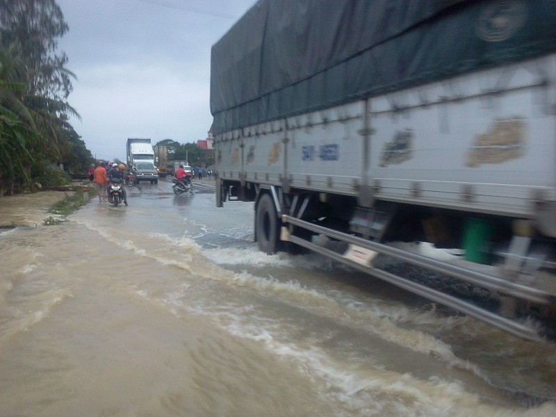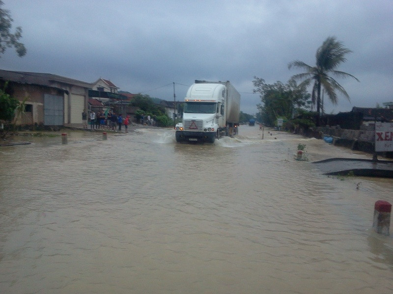 Suốt từ 20 giờ tối qua (16/10), tại km 396 đến km 397 , quốc lộ 1A đoạn qua xã Quỳnh Văn huyện Quỳnh Lưu giáp ranh với thị xã Hoàng Mai bị ngập nặng với hàng ngàn lượt phương tiện dồn ứ hai đầu đường do mặt đường bị ngập sâu từ 0,5 đến 1,2 mét.