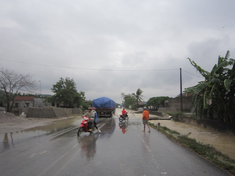 Đến 8 giờ sáng nay, trên địa bàn huyện Quỳnh Lưu và tỉnh Nghệ An vẫn tiếp tục mưa nhỏ và mức độ thiệt hại vẫn tiếp tục gia tắng trong khi hai tuyến giao thông chủ lực sắt, bộ vẫn bị chạy chậm.