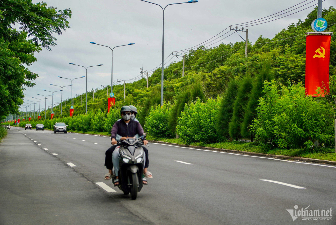 Những con đường rợp bóng cây xanh chạy quanh huyện đảo.