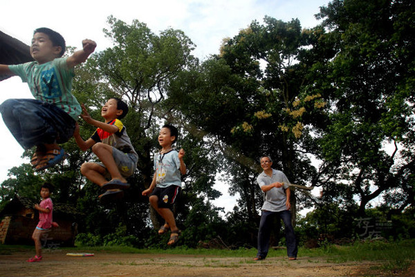Hầu hết những đứa trẻ trong lớp của thầy Zeng đều bị cha mẹ bỏ rơi. Bức ảnh được chụp trong giờ nghỉ giải lao, khi các em ra sân chơi trò nhảy dây. Nhảy dây cùng học sinh là một trong những sở thích của thầy giáo này.
