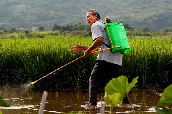Hết giờ lên lớp, thầy Zeng đi phun thuốc trừ sâu cho ruộng lúa rộng hơn 12.000 m2 của gia đình.