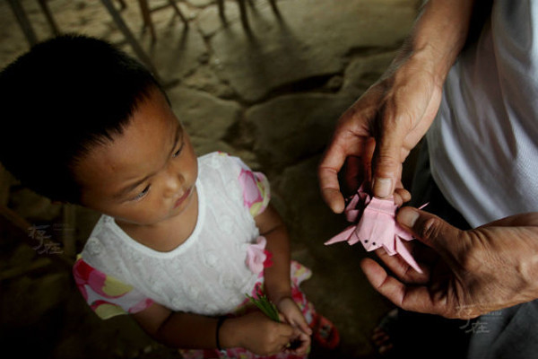 Thầy Zeng hướng dẫn học sinh cách gấp con vật bằng giấy.