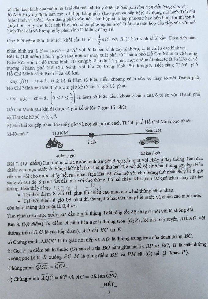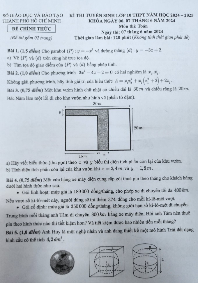 Đề thi Toán vào lớp 10 tại TPHCM như sau: