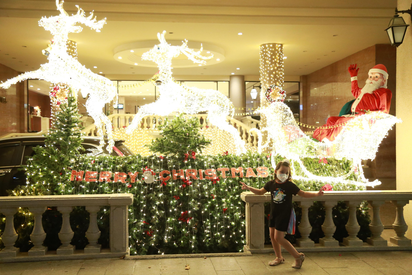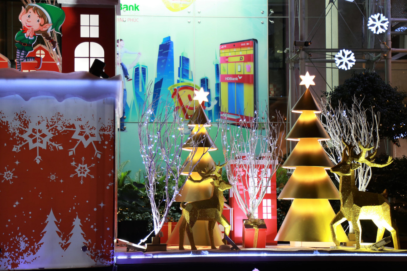 | Nhiều cửa hiệu, khách sạn trên phố đi bộ Nguyễn Huệ cũng bài trí không gian đón Giáng sinh bắt mắt và thu hút nhiều bạn trẻ tìm đến vui chơi. |