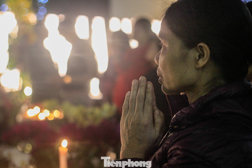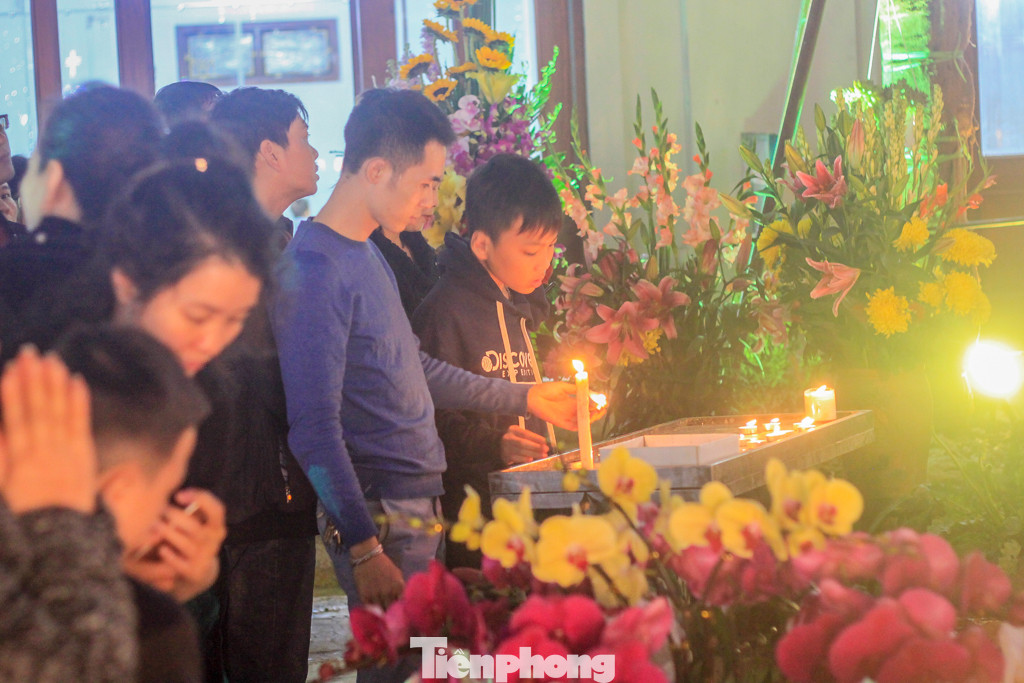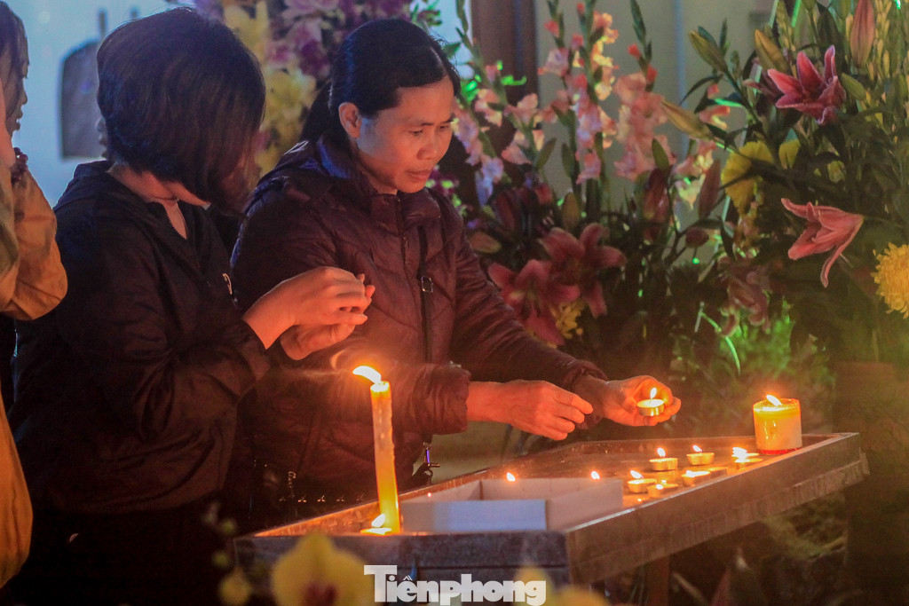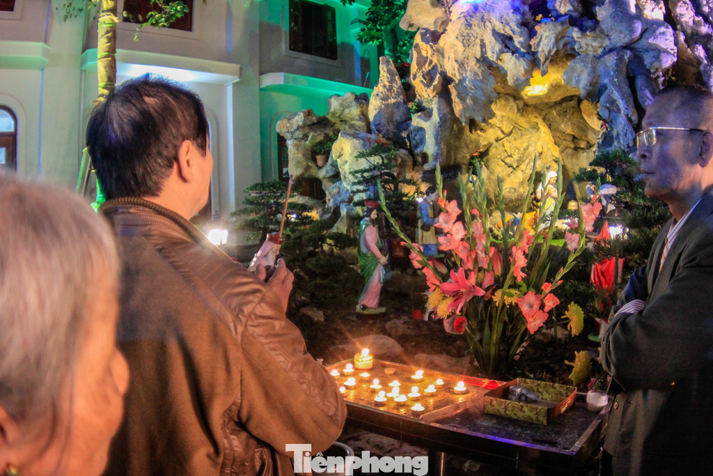Nhiều giáo dân thắp nến trước cửa hang đá để cầu nguyện Giáng sinh an lành.