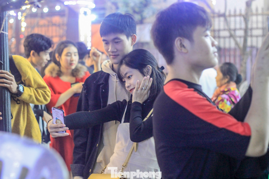 Bạn trẻ selfie trước khung cảnh Giáng sinh lung linh.