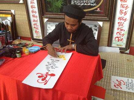 Bên cạnh những ông đồ già là những bà đồ, ông đồ trẻ, với những nét chữ cũng khá tinh tế và chuyên nghiệp.