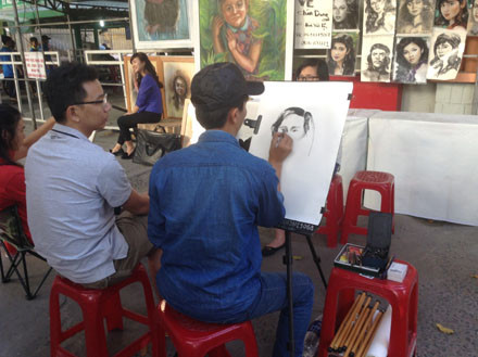 Bên cạnh hoạt động cho chữ là các hoạt động khác cũng khá thu hút như vẽ chân dung, chụp hình miễn phí, tạo hình cosplay…
